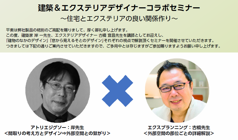 この度、建築家 岸 一先生、エクステリアデザイナー 古橋 宜昌先生を講師としてお迎えし、
