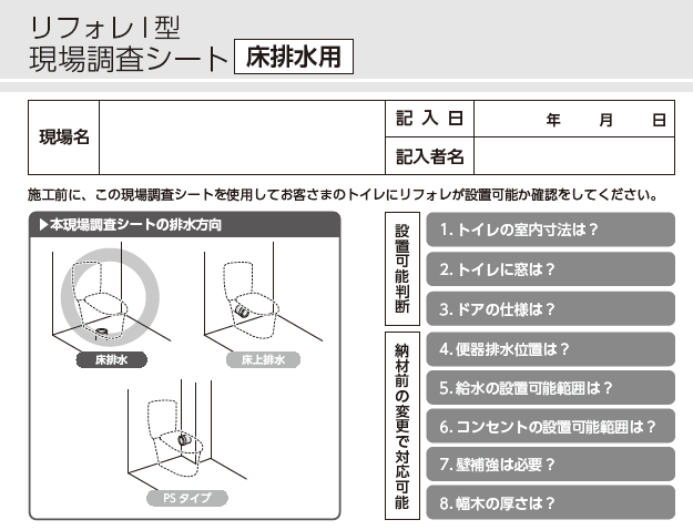 施工前に、リフォレが設置可能かどうか確認するための資料です(床排水用)