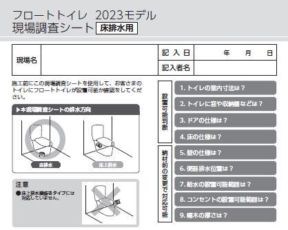 フロートトイレ現場調査シート(床排水用)(2023モデル)