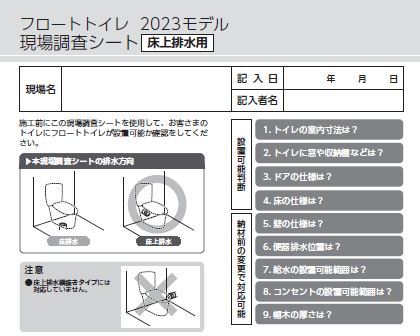 フロートトイレ現場調査シート(床上排水用)(2023モデル)