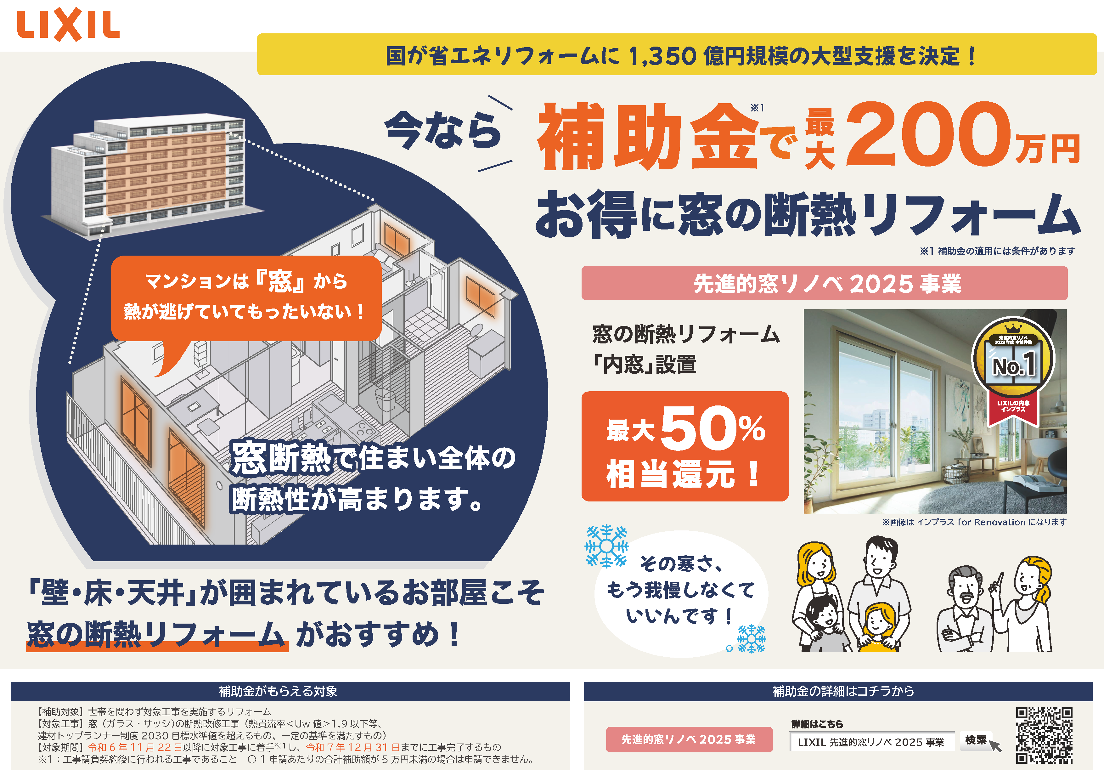 戸建てだけじゃもったいない!マンション窓の断熱リフォームチラシ