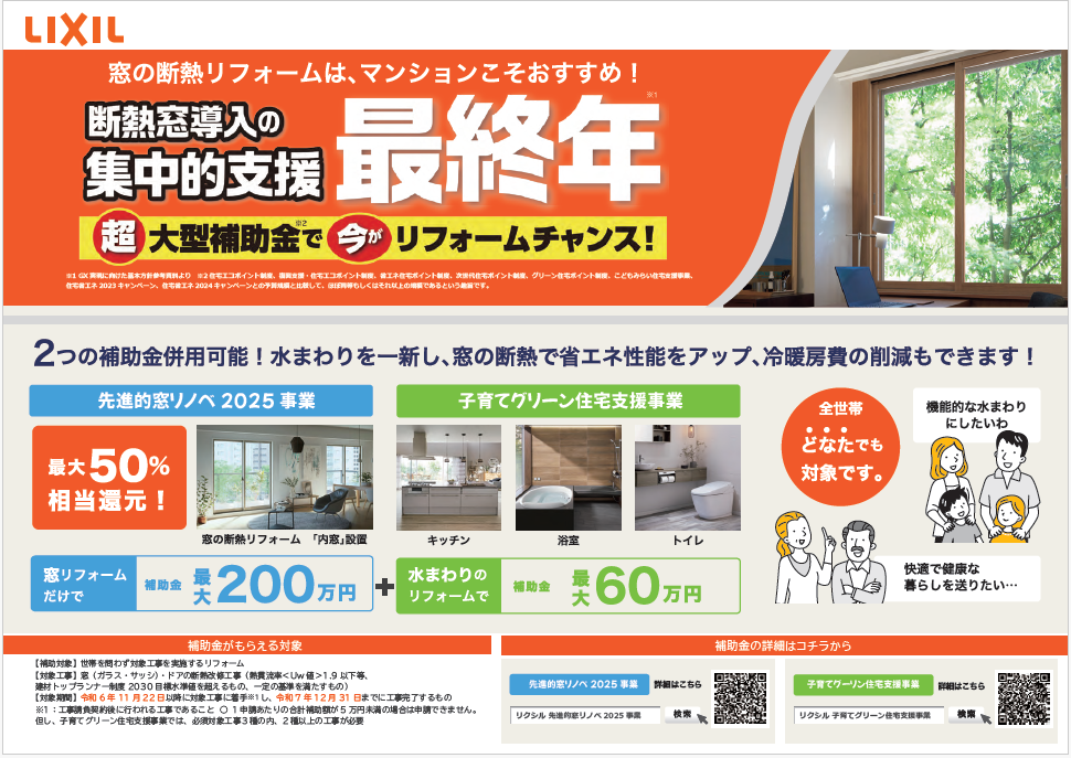 補助金活用!水まわりを一新+窓の断熱で省エネ性能をアップ!冷暖房費の削減もできます!