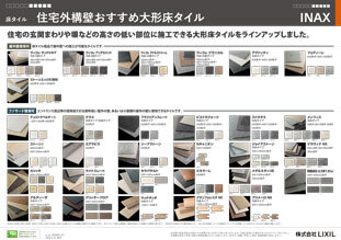 住宅の玄関まわりや塀などの高さの低い部位に施工できる大形床タイルをラインアップ。