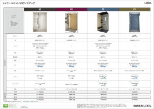 シャワーユニットNSの仕様やサイズのラインアップをご紹介