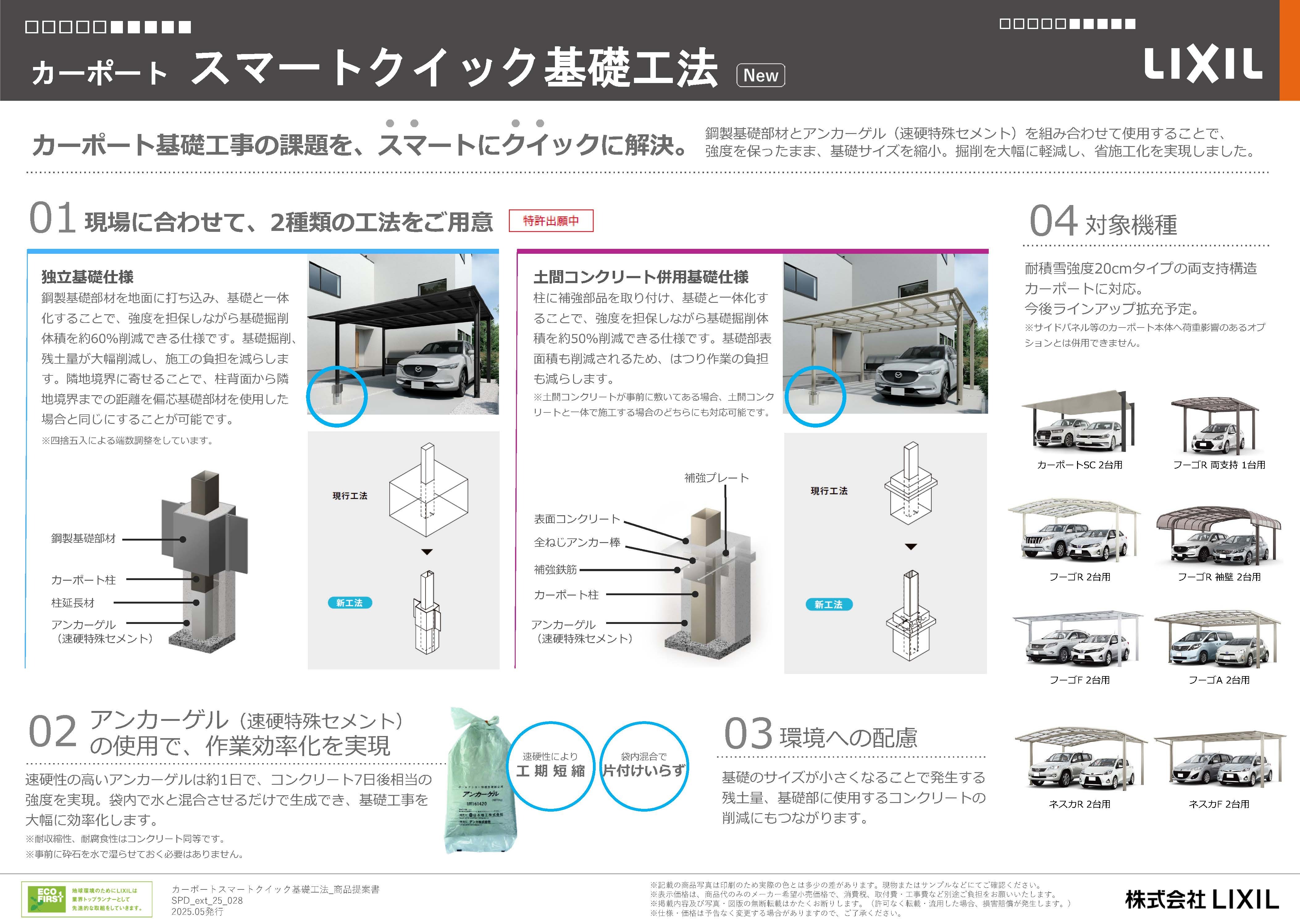悩ましいカーポートの基礎工事を、スマートにクイックに。