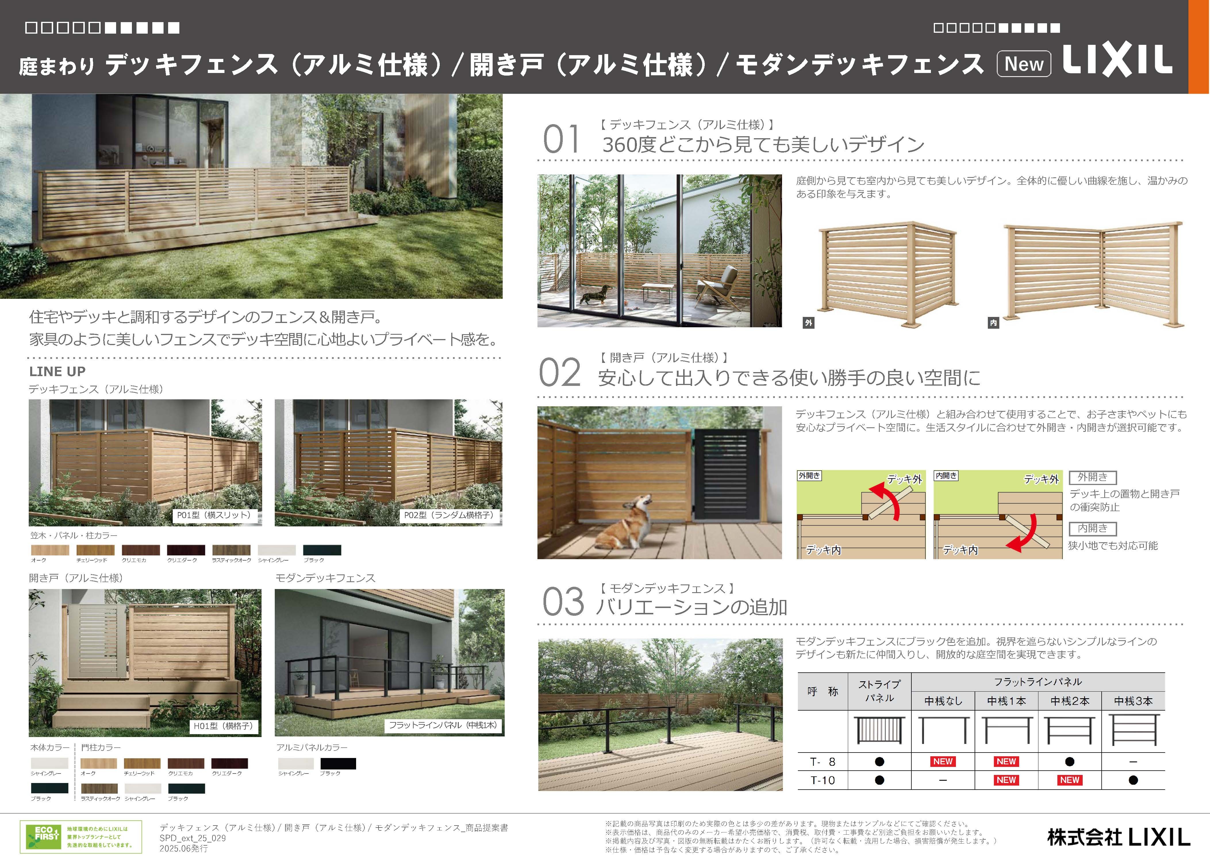 住宅やデッキと調和するデザインのフェンス&開き戸。デッキ空間に心地よいプライベート感を。