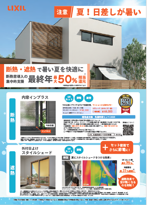 暑い季節を最適に過ごすには、外側で日射遮蔽することが重要(効果が高い)です。 窓断熱で内窓インプラス、遮熱で外付日よけスタイルシェードを掲載しております。 インプラス + スタイルシェードのセット使用でさらに節電効果! 2025年6月に品種追加をする『スリムアート』も掲載!