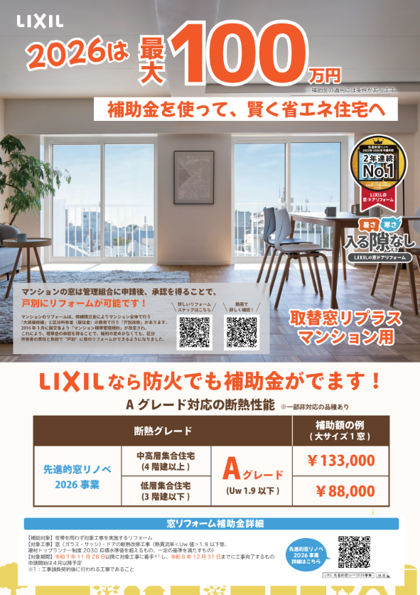 2026年も補助金スタート!|窓リノベ(リプラスマンション用)