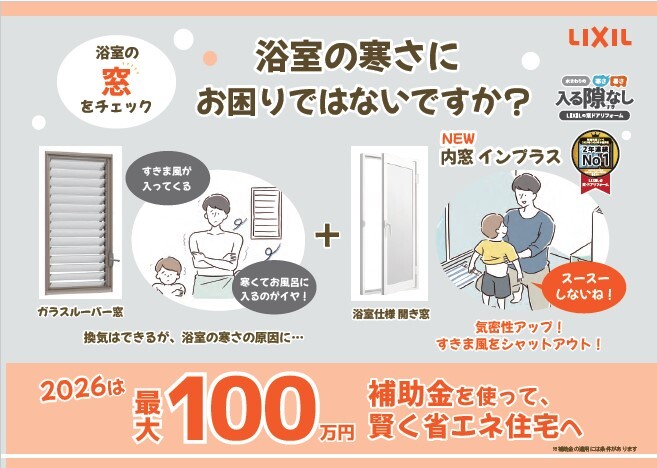 [2026窓リノベ]浴室の寒さに困っていませんか?|インプラス浴室提案