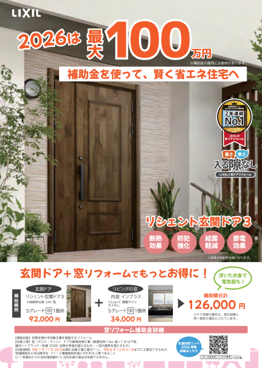 2026年も補助金スタート!|窓リノベ(リシェント編)