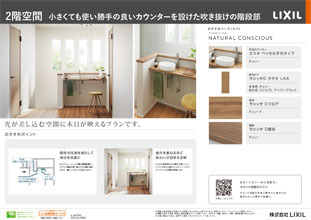 「エスタ」2階空間 小さくても使い勝手の良いカウンターを設けた吹き抜けの階段部