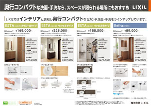 「エスタ」「リフラ」奥行コンパクトな洗面・手洗なら、スペースが限られる場所にもおすすめ