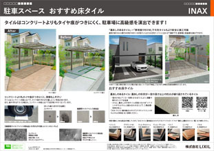 タイルはコンクリートよりもタイヤ痕がつきにくく、駐車場に高級感を演出できます!